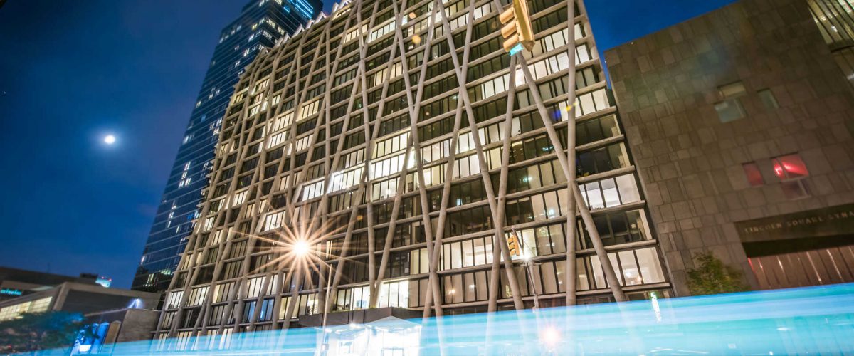 This 22-story building is an unusually creative design employing the use of a concrete exoskeleton which not only established a unique identity but also provided for additional rentable space within the building. One of NYC’s leading architects, Handel Architects, provided full architectural services on this project. Just blocks from the 72nd Street metro center on the Upper West Side, the building is also just a short walk from Lincoln Center for the Performing Arts. The street frontage along Amsterdam was constrained by the residential lobby, with retail opportunity for a high-end pastry/coffee shop – Boule & Cherie. There is also a service entrance for a below grade child care operation.